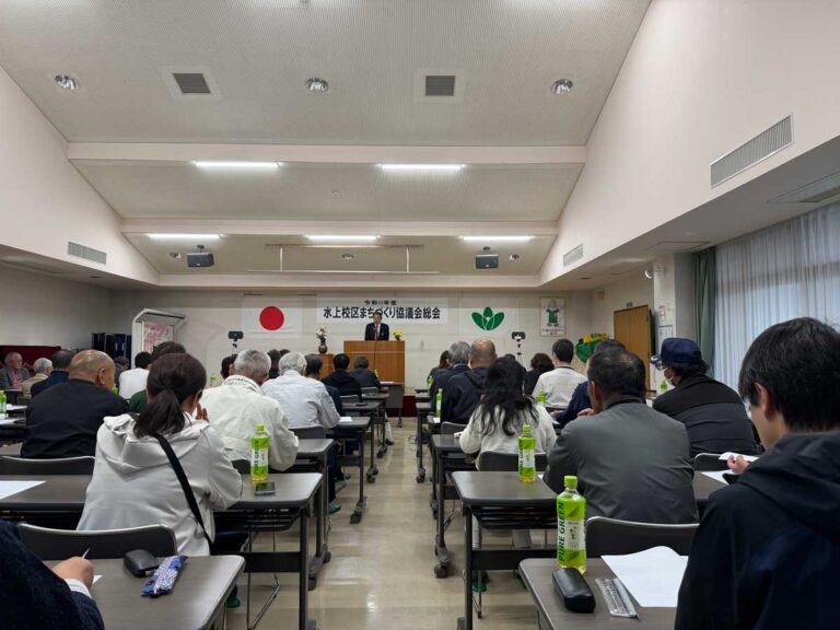 水と緑、歴史と文化を生かした魅力ある地域づくり。各行政区における地域の環境資源を改めて見直すことにより(郷土の再発見)、これを水上校区における財産として後世へ引き継ぐことを目指します。